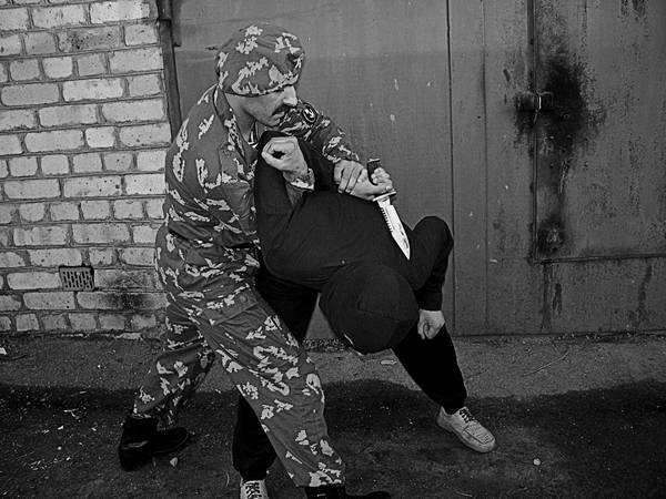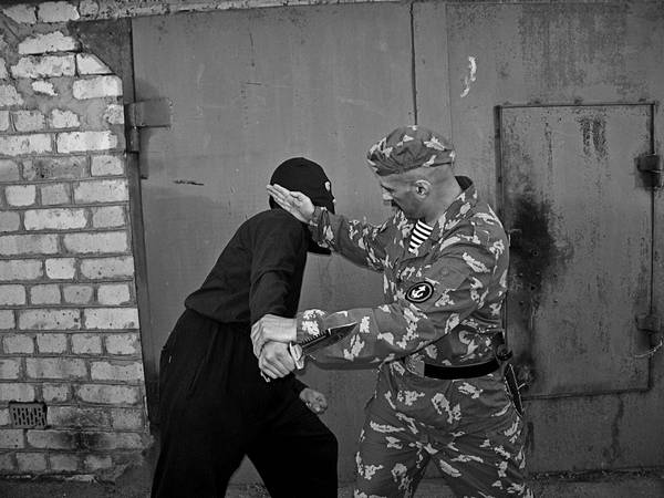 Этот удар целесообразно наносить когда бой ведется в ближней дистанции в замкнутом пространстве при ограниченном маневре. При нанесении удара ладонь развернута к против-нику. Подушечки пальцев плотно прижаты к ладони в области пястно-фаланговых сочленений. Кисть разогнута в лучезапястном суставе. Для проведения удара не нужно делать амплитудного замаха. Это короткое и точное движение. Только при его про-ведении нужно плотно сжать пальцы и не допускать подвижности в лучезапястном суставе. Кисть с предплечьем должны представлять из себя монолит и иметь лишь одну степень подвижности – вперед к цели атаки. Для того чтобы эффективно провести этот удар, нужно правильно выбирать момент и позицию: если голова против-ника запрокинута назад, целесообразно, чтобы удар пришелся снизу в подбородок. Если же подбородок прижат к груди – успеха такой удар не принесет. Тогда лучше снизу вверх ударить в область наружных отверстий носа. Это рефлексогенная зона – она снабжена множеством нервных окончаний. При точном попадании противник испытывает выраженные болевые ощущения. Чем неожиданнее для него будет действие – тем больше шансов на успех. Для тренировки этого удара следует научиться на твердой поверхности колоть грецкие орехи ударом ладони.