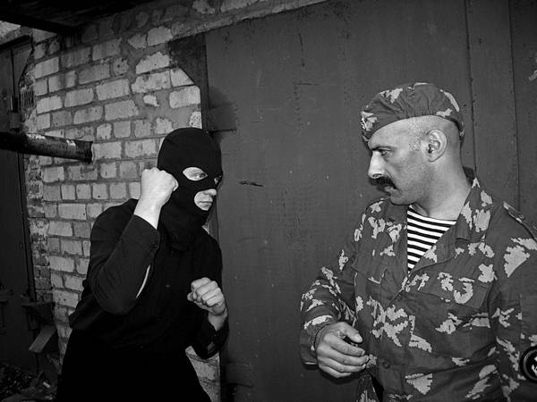 в. УДАР ЛОКТЕМ ВЕРТИКАЛЬНЫЙ, УДАР В ЖИВОТ, СОЛНЕЧНОЕ СПЛЕТЕНИЕ, В ГРУДЬ – ПО РЕБЕРНЫМ ДУГАМ. Это действие проводится тогда, когда противники находятся в положении партера, например после броска, когда боец не удержался на ногах. Наносится он сверху-вниз острием локтя за счет амплитудного движения в плечевом суставе.