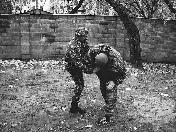 «Делай четыре» – руки крепко держат оружие, плечи разворачиваются так, чтобы левое оказалось сзади, а правое – спереди. Корпус наклоняется вперед. Правая нога резко выпрямляется за подколенными ямками противника, действуя как катапульта. После удара тела противника о покрытие он не удерживает оружие. Закончить комбинацию можно разными способами: