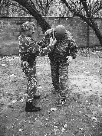 «Делай три» – поднимая вверх предплечье руки, держащей пистолет, боец проводит рычаг локтя, заставляя противника бросить оружие или нанося ему тяжелую травму локтевого сустава. В любом случае противник будет обезврежен.