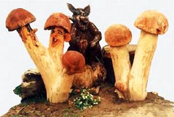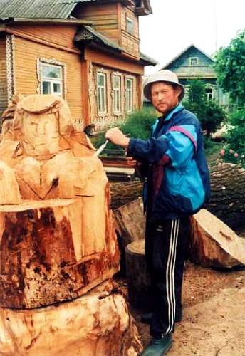 — Росли на нашей улице старые-престарые тополя, — рассказывает мастер. — От них лишь тень, пух да мусор. Вот мы и решили всем миром их свалить. Что и сделали. Стволы и ветви пошли на дрова, а кряжи взял себе. Долго присматривался к ним и в какой-то момент вдруг как бы прозрел, увидев в одном из пней берендеевский образ. Взял мотопилу, топор, отсек все лишнее — как Роден у камня.