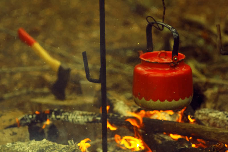 Через несколько минут мы уже сидели у костра. Старушка выловила из котла дымящийся кусок оленьего мяса и расторопно нарезала его дольками: