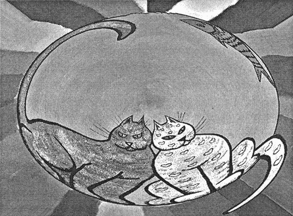 — Знаешь, с самого начала путешествий сквозь так называемое «гиперпространство» было замечено, что человеческий мозг в условиях отсутствия эфира Чеснокова ведёт себя как-то странно. В одних случаях вроде бы умные люди непроходимо тупеют, у других наоборот — интеллект растёт как в гидропонной оранжерее. Именно тогда и возник проект «Совершенный Разум». Мурзик — продукт эксперимента «Котята-74». На корабле, находящемся в квазисостоянии, окотилась кошка. Для её котят была разработана оригинальная методика развития. Сейчас их интеллект в несколько раз превышает человеческий.