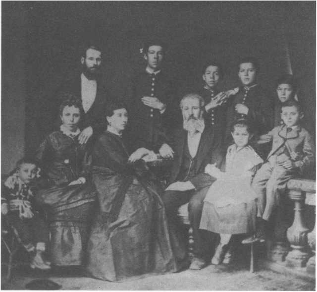 Семья Чеховых. Сидят:Михаил, Мария, Павел Егорович, Евгения Яковлевна, тетка Людмила Павловна с сыном Георгием. Стоят:Иван, Антон, Николай, Александр, Митрофан Егорович (брат отца). 1874 г. Таганрог. Фото С. С. Исаковича.