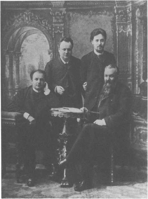 П. М. Свободин, В. Н. Давыдов, А. П. Чехов, А. С. Суворин. Январь 1889 г. Петербург. Фото К. Шапиро.