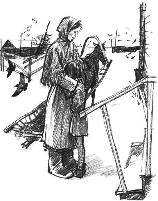 Она подбежала к Дарье и молча обхватила ее сырой армяк.