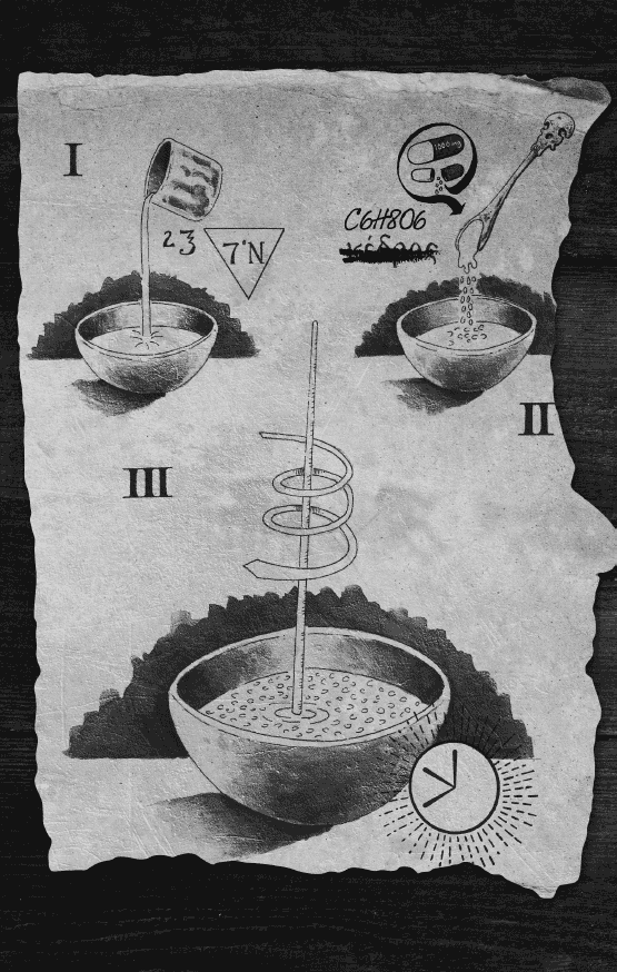 Тот камень, что сорвался с шеи Сары и спас всех, тоже лежит на столе. Он черный, как уголь, темнее, чем Сарины зрачки. Рядом с камнем – желтый листок бумаги с неровными краями и стеклянная мензурка с прозрачной жидкостью.