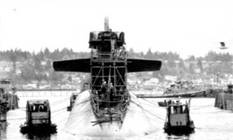 Продувка четырех главных балластных цистерн на атомоходе SSBN-731 «Алабама», район севернее Порт-Лалоув, шт. Вашингтон. Испытательное погружение после ремонта.