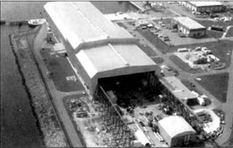 Аэрофотоснимок сухого дока базы Кингз Бэй. Здесь после патрулирования проходят осмотр и ремонт ракетоносцы типа «Огайо».