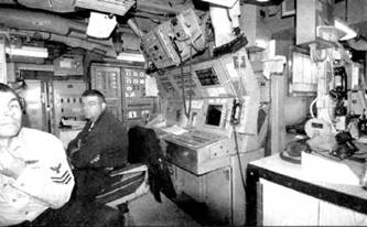 Пульт управления ракетной стрельбой – здесь все, что касается ракет «Трайдент». Любая неисправность любой ракеты моментально отражается на пульте. Фиксируется каждый дюйм отклонения ракеты от заданного положения в шахте – это очень важно.