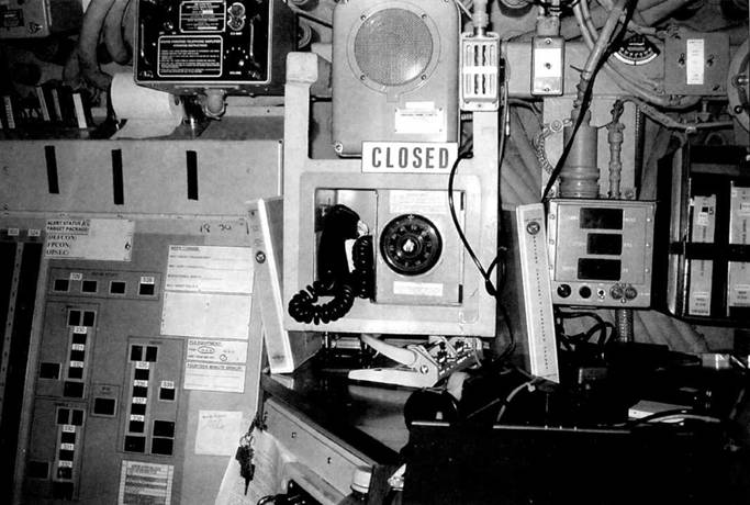 Пуски управления ракетной стрельбой атомохода «Генри М. Джексон». Черные кнопки предназначены для учений, красные – для организации Апокалипсиса или же реального пуска ракеты. Пуск ракеты возможен только совместными действиями четырех человек, которые «поворачивают ключ» – командир лодки, офицер ракетной боевой чисти и еще двое. До 1997 г., и период Холодной войны, подводники .могли принимать решение на пуск ракет самостоятельно, без приказа высших государственных лиц. К настоящее время процедура получения разрешения на ракетную стрельбу усложнены. Страшное место дополнено милым бытовым предметом – рулоном туалетной бумаги. Все знают – американцы без пипифакса не воюют!