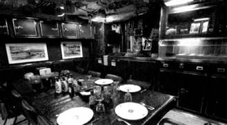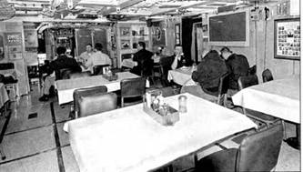 Офицерская кают-компания. Офицеры здесь не только вкушают пищу, но и проводят важные совещания. На тарелках – эмблема атомного ракетоносца «Генри М. Джексон».