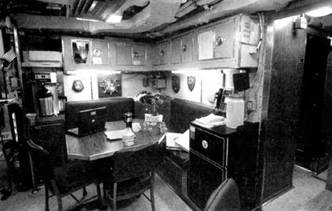 Перед каютой старшего офицера, если смотреть от носа корабля, находится каюта командира. Небольшое, но очень функциональное помещение.