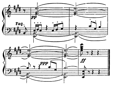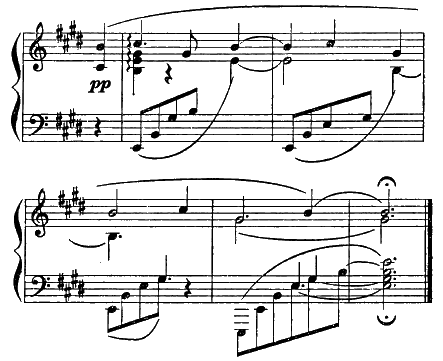 Брамс, всегда настороженный, сдержанный критик своего знаменитого современника, нечаянно процитировал это завершение в одной из поздних фортепьянных пьес (Op. 119, № 2) — вот изящный, непроизвольный знак признания! На полях заметим для себя, что тождественность тональности, как всегда, ясно указывает на подсознательно закрепившийся в памяти образ: