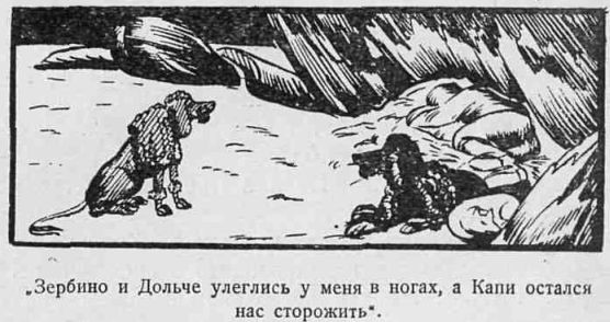 Я снова послал Капи на розыски, но он вернулся через короткое время один, не найдя Зербино. Я не мог ничего придумать, чтобы выйти из затруднительного положения. Что скажет Витали, если одна из его собак пропадет?