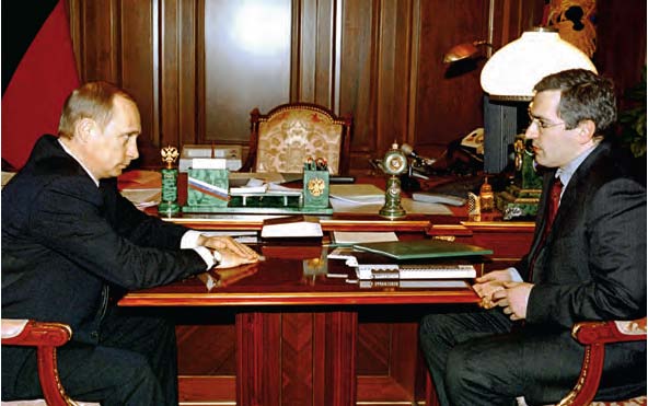 Не за круглым столом: когда-то один их богатейших людей России, Михаил Ходорковский теперь находится в заключении по обвинению в мошенничестве и уклонении от уплаты налогов. Путин предупредил его, чтобы он не использовал свое состояние в 15 миллионов фунтов стерлингов в политических целях