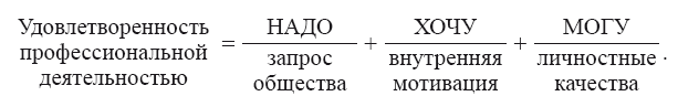 Рассмотрим формулу удовлетворенности профессиональной деятельностью: