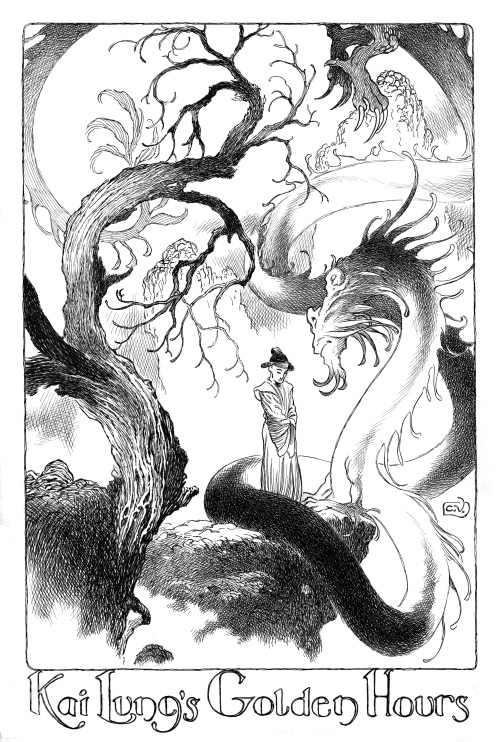 «Золотые часы Кай Луна» (1922). Английский писатель Эрнест Брама опубликовал несколько сборников рассказов, написанных от лица весельчака и чудака по имени Кай Лун: «Бумажник Кай Луна», «Золотые часы Кай Луна», «Кай Лун расстилает циновку» и «Кай Лун под тутовым деревом». Действие всех этих рассказов разворачивается в Китае, но не настоящем, а созданном фантазией писателя (поскольку Брама в Китае не бывал), – на фоне туманных пейзажей, населенных коварными драконами, свирепыми разбойниками, своенравными мандаринами и пленительными девами. Последние то и дело попадают в беду, и главный герой получает возможность поведать нам своим изысканным слогом очередную сказку, расцвеченную маленькими чудесами.