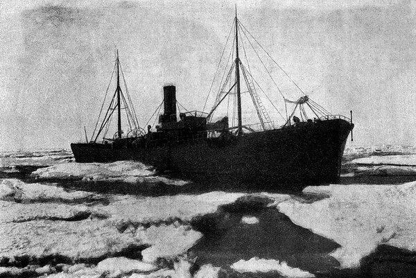 В 1899 году пароходы, шедшие в Карское море, встретили лед на значительном расстоянии к западу от Югорского Шара. Рисунок в тексте сделан с фотографии, снятой в то время. – Прим. С.О.М.