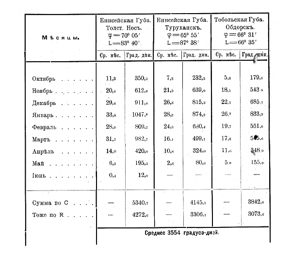 Тоже для трех пунктов, по северному берегу Сибири – 3554 градусо-дней.