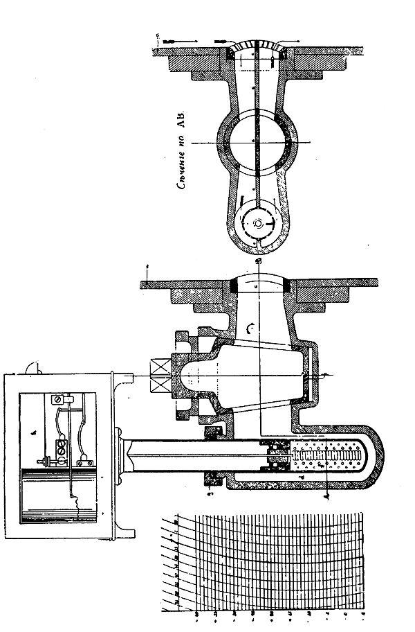 Проток воды через кран очень сильный, так что температура «внутреннего» помещения не влияет на воду в кране. Был сделан следующий опыт: кран заперли и под камеру со спиралью подвели снизу ведро с горячей водой. Стрелка термографа тотчас же поднялась, но затем, когда открыли кран, она моментально приняла свое прежнее положение, несмотря на действие горячей воды в ведре. Это показывает, что инструмент очень чувствителен к температуре воды, которая через него протекает. На всякий случай кран и прочее обшито нетеплопроводной массой.