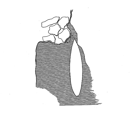 Все это понималось мною и ранее, поэтому у судна нет вертикальных плоскостей, за исключением небольшой поверхности у переднего винта. Здесь она неизбежна, и казалось бы, что, понимая дело, мы должны были тут поставить особо сильные крепления. На деле вышло не так: место это приходится под ледяным поясом, шпангоуты отстоят один от другого на 2 фута, а не на 1 фут, как по ледяному поясу, и приходятся под очень косым углом (60°) к обшивке, которая точно так же не утолщена. Каким образом произошел такой недосмотр, объяснить не умею, но теперь, после того как получили пробоину, представляется совершенно очевидным, что это есть самая слабая часть всего судна. Разумеется, ее несколько защищал передний винт, а когда его сняли, то это место обнажилось, и его надлежало сделать крепче ледяного пояса, в особенности после того, как сняли передний винт.