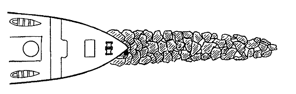 Чем отложе линии шпангоутов, тем нос корабля более приближается к ложкообразной форме, которая, по моему мнению, невыгодна для ломки льда. В Гангэ в 1898 г. я видел работу парохода «Муртайя» во льдах и лично наблюдал, как ложкообразный нос задерживает движение судна. Случалось несколько раз, что глыба льда попадала под носовую часть и там оставалась; затем к ней прилегала впереди нее другая глыба, к той – третья и т. д., пока перед носом не скапливалось этих глыб столько, что ледокол гнал перед собой целое поле разбитого льда, простиравшегося вперед на 100 и более футов, причем, однако, ширина его не превосходила ширины парохода. Это очень замедляло ход судна, так что оно наконец останавливалось; тогда давали задний ход, отступали немножко назад и с разбега перескакивали через поле, которое перед тем гнали перед собой. Такое явление можно объяснить лишь трением льда и снежного покрова о поверхность ледокола в носовой части. Это трение или в данном случае даже прилипание оказывалось достаточно, чтобы поглотить всю силу машины.
