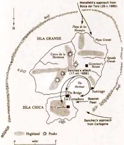 Захват Э. Мансфелтом острова Санта-Каталина (Провиденсия). Карта из книги П. Эрла