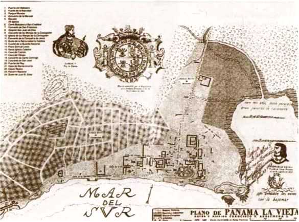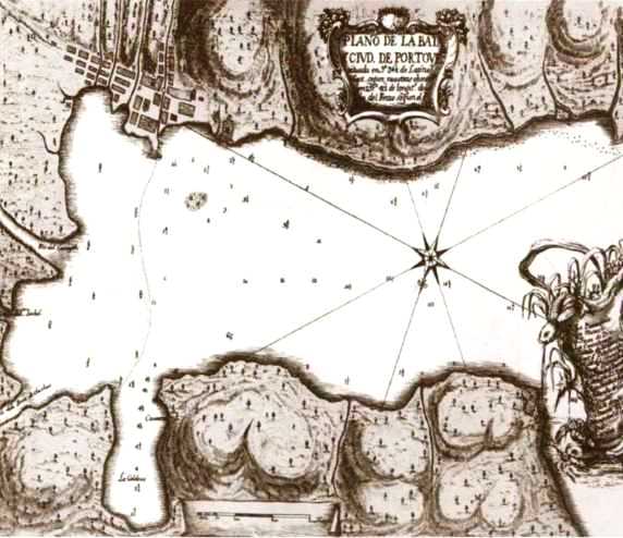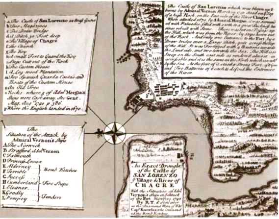 Крепость Сан-Лоренсо в устье реки Чагрес. Старинная карта