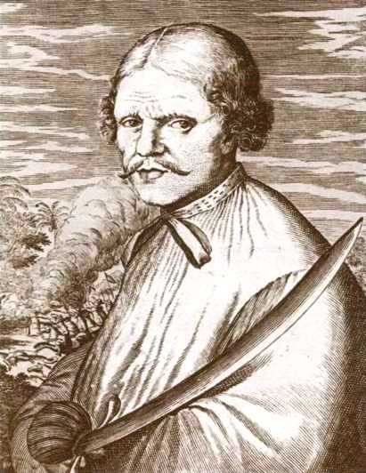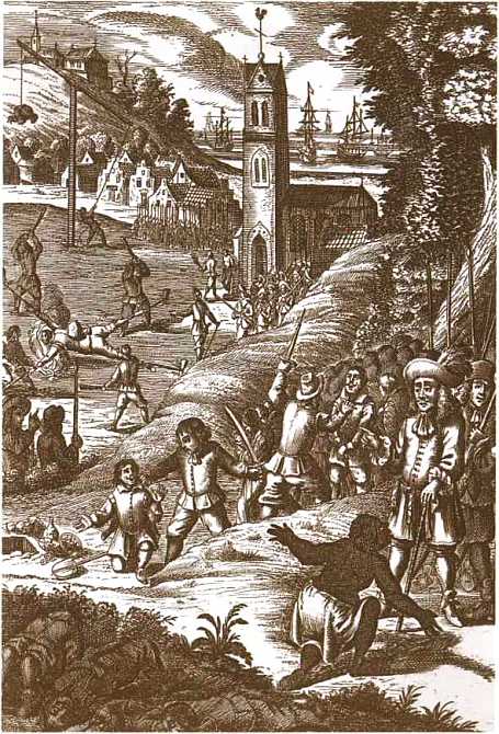 Геррит Герритсзоон по кличке Рок Бразилец. Гравюра из книги Эксквемелина. 1678 г.