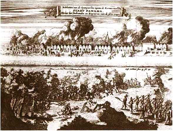 Генри Морган в окрестностях Панамы. Старинная гравюра