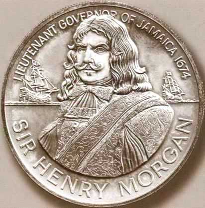 Вице-губернатор сэр Генри Морган на серебряной монете Ямайки