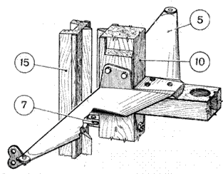 1. Серьга 2. Катушка крепления амортизации 3. Амортизация костыля 4. Рычаг осевой трубы 5. Масленка верхняя 6. Осевая труба 7. Трос управления костылем 8. Пружина управления костылем 9. Рычаг управления костылем 10. Предохранительная накладка 11. Костыль 12. Пята костыля 13. Оковка костыля 14. Ограничитель наклона костыля (буфер) 15. Предохранительный трос 16. Серьга предохранительного троса 17. Распорка фюзеляжа 18. Подшипник 19. Кронштейн крепления костыля к осевой трубе 20. Масленка нижняя