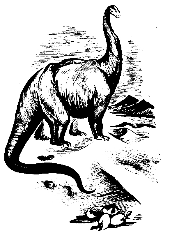 Гора зашевелилась, тень дрогнула и передвинулась. Над горой поднялась длинная шея. Небольшая голова повернулась в одну сторону, в другую… Пасть раскрылась, животное протяжно зевнуло.