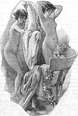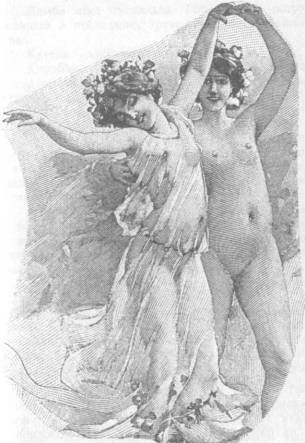 Но вот послышался легкий шелест шагов, и появились две молодые девушки, одетые одна в желтое, другая в голубое. Сквозь прозрачные одежды видны были пояса девственниц, которые охватывали бедра и закреплялись низко под юным животом. То были ночная певица и одна из флейтисток.