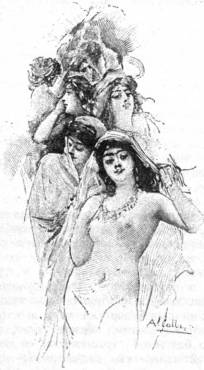 В одно мгновение музыкантши сбросили свою незатейливую одежду. Они быстро омыли друг друга в большом фонтане зеленого мрамора, вода из которого стекала в бассейн, и бросились на постель.