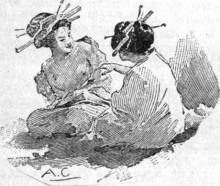 Их домики представляли из себя следующее: дверь из красной меди (священного металла богини), на которой висел молоточек в виде фаллоса, которым надо было стучать по выпуклому изображению женского лона; ниже было выбито имя куртизанки.