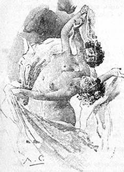 Нота, другая, аккорд — и двенадцать танцовщиц легко и слаженно задвигались перед гостями. Каждое их движение было исполнено неги и ленивой чувственности. Им было немного тесновато, и порою они сталкивались, словно волны, которые ударяются одна о другую в небольшой бухточке. Но вот они разбились на пары и, не прекращая танца, расстегнули пояса и вдруг сбросили накидки. Запах нагих женских тел заполнил залу, заглушая даже аромат цветов и вин. Их фигуры клонились то вправо, то влево, красотки поводили бедрами, поигрывали животами и закрывали руками глаза. Они резко сгибались и разгибались, едва не переламываясь в талии, их тела сливались, груди упирались в груди, тесно смыкались животы...