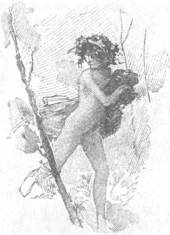 Через некоторое время, пробегая вприпрыжку мимо колоннады пальм, она встретила мальчика по имени Микиллос, заблудившегося в садах. Мелитта коварно предложила себя в качестве проводника, но только завела мальчишку в лес, чтобы насладиться им. Микиллос недолго пребывал в неведении относительно замыслов Мелитты. Однако они были еще настолько дети, что мигом забыли про объятия и, став скорее друзьями, чем любовниками, наперегонки помчались по лесу и внезапно очутились у моря.