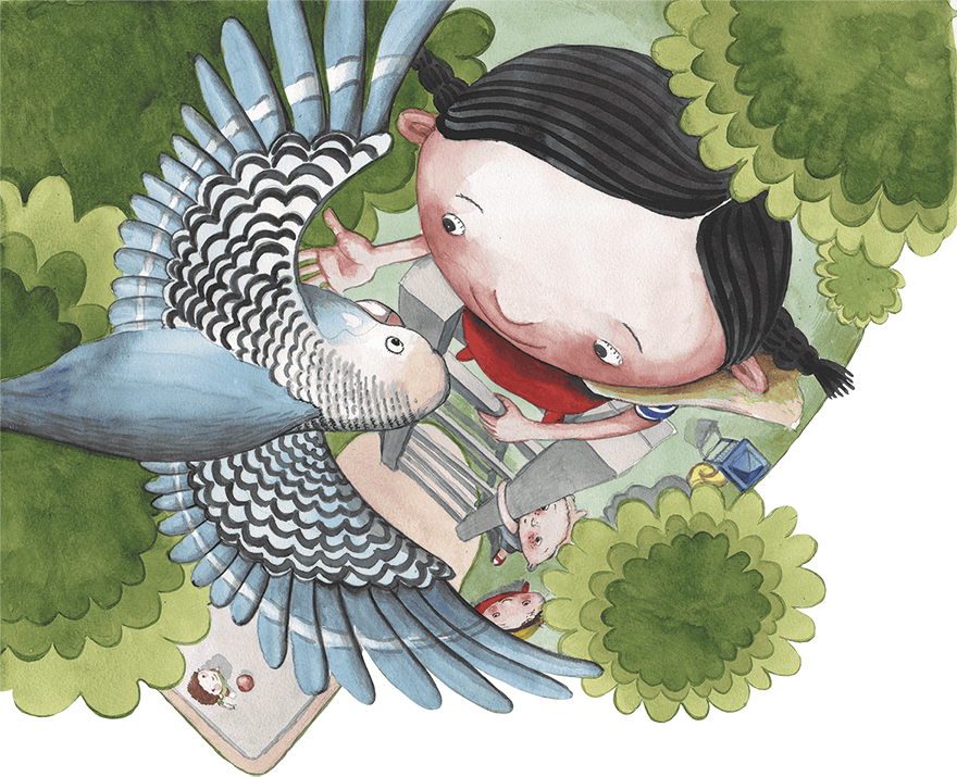 Все, кто был во дворе, собрались вокруг дерева. Они и чирикали, и подпрыгивали. Девочка с пружинными кудряшками даже протягивала свою недоеденную булку и кричала: «На-на-на!» Как будто звала собаку.