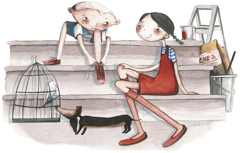 Мы нашли себе место на лестнице, перед вторым подъездом. Мишка устроился на самой верхней ступеньке, а я – внизу. Получалось, что мы как будто одного роста.