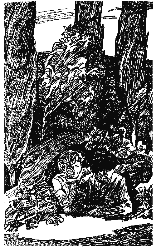 Они помчались по улице, юркнули в проходной двор, забрались в Генкин сад и спрятались в шалаше.