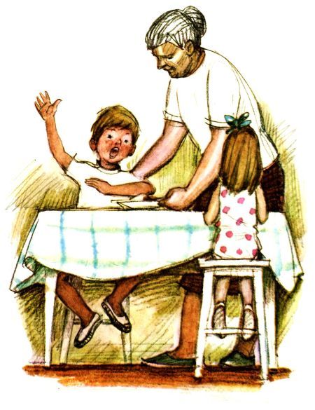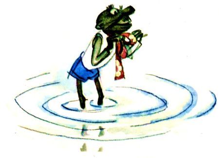 — Вот что, — сказал Кузя, — ты здесь сиди пока в ручье и исправляйся. А когда исправишься, я, может быть, подарю тебе новые, нормальные штаны — серые в белую клеточку.