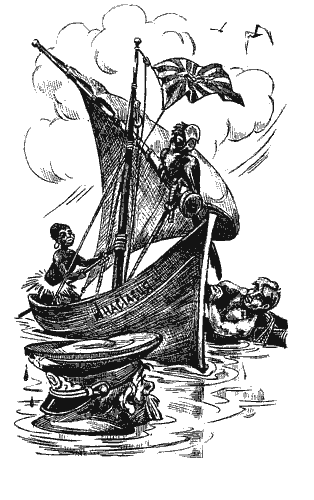 — Поднять паруса! — скомандовал генерал Бочкин, который взялся управлять пирогой и сел на корму к рулевому веслу.