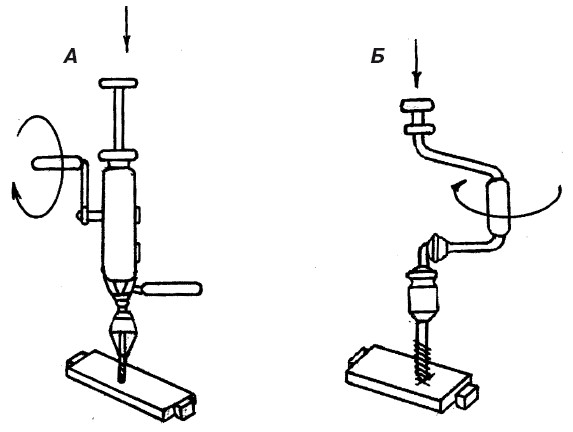 Рис. 17. Ручная дрель (А) и коловорот (Б)