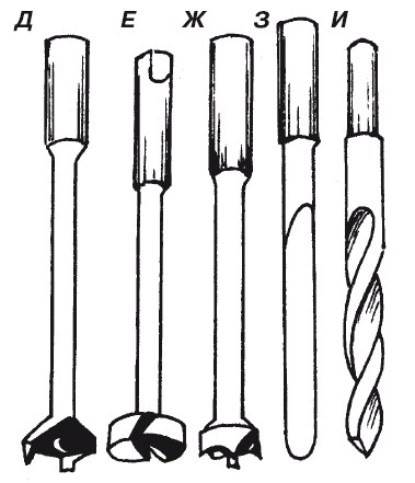 Г – ложечное; Д – центровое сверло; Е – пробочное бесцентровое;Ж – пробочное центровое; З – ложечное прямое; И – спиральное простое