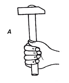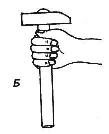 Рис. 21. Правильное (А) и неправильное (Б) положение молотка в руке