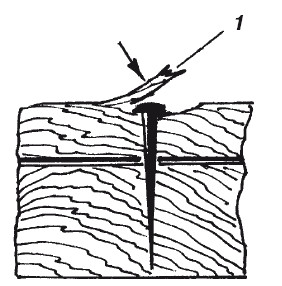 Рис. 23. Обеспечение скрытности гвоздевого соединения подрубанием кромки: