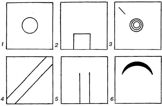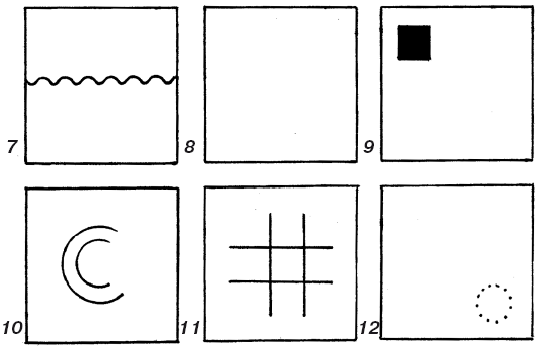Посмотри на рисунок с 12 квадратами (рис. 28). В каждом квадрате изображены какие-то фигуры. Все они являются незавершенными. Задача, которая стоит перед тобой, – завершить рисунки. Сделано? Тогда приступим к анализу твоих рисунков.