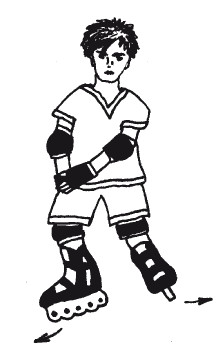Повороты на роликовых коньках выполняются следующим образом. При повороте налево левую ногу поставь впереди правой на расстоянии одного конька. Правой ногой несильно оттолкнись. При этом ноги должны быть немного согнуты, а корпус тела развернут в сторону поворота и немного наклонен вперед. Чем быстрее ты катишься, тем дальше следует ставить левую ногу и тем сильнее сгибать колени.